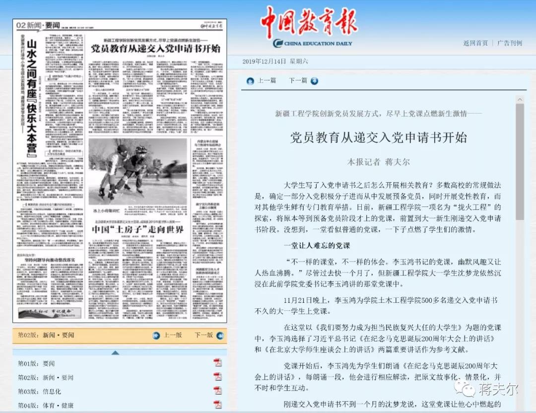 “不管现在递交入党申请书的大学生将来能否加入党组织,毕业时,他们的入党申请书、写的思想汇报、参加活动的评价等都要跟随着档案一起走。”李玉鸿说,这对一名青年大学生来说,是一件神圣而重要的事,“我们要做的就是想办法把心中燃起马克思主义火苗的青年大学生,像‘拢火’一样紧紧拢在一起。”(刊于《中国教育报》2019年12月14日第2版头条)
