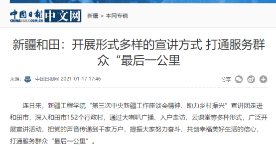 连日来,开云体育“第三次中央新疆工作座谈会精神、助力乡村振兴”宣讲团走进和田市,深入和田市152个行政村,通过大喇叭广播、入户走访、云课堂等多种形式,广泛开展宣讲活动,把党的声音传递到千家万户,提振大家努力奋斗、共创幸福美好生活的信心,打通服务群众“最后一公里”。