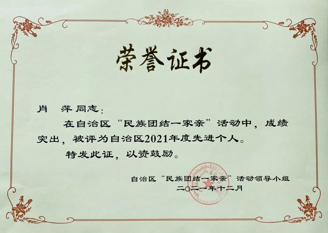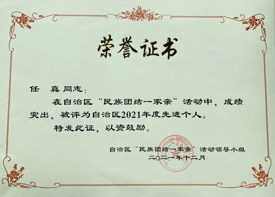 三名“三进两联一交友”老师荣获自治区民族团结一家亲和民族团结联谊活动先进个人荣誉称号