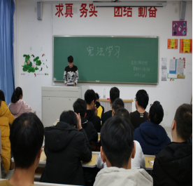 能源工程学院为深入开展宪法宣传教育、弘扬宪法精神,于11月25日晚自习期间开展了学习《宪法》的主题班会活动,进一步提高了全院师生的法律意识,弘扬“团结、友爱、互助、进步”教育精神。本次主题班会活动中,各班结合校情和学生的生活实际开展主题教育,针对生活中青少年违法案例、良好的行为习惯养成教育进行了探讨,并结合自身实际讨论了对宪法条文的认识与理解。讨论气氛热烈,同学们学在其中、乐在其中。