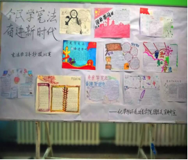 化学与环境工程学院于11月21日下午组织学生学习《宪法》及2018年《中华人民共和国宪法修正案》并举办了以“全民学宪法、奋进新时代”为主题的宪法学习手抄报展。通过创作手抄报巩固和提高了学生对宪法知识的认识,全面提升了学生的宪法意识,在学院营造了更加浓厚的法治氛围。