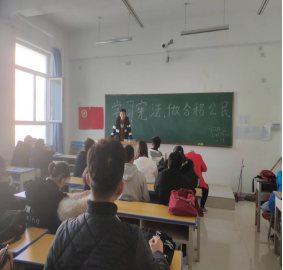 今年12月4日是第五个国家宪法日,为深入开展宪法宣传教育,牢固树立宪法法律权威,营造全校师生尊崇宪法、学习宪法、遵守宪法、维护宪法、运用宪法的良好氛围。按照学校“一周一小专题,一月一大主题”思想政治教育工作的安排,我校于11月开展了“弘扬宪法精神 增强宪法意识”主题活动。活动形式多样,内容丰富,“三进两联一交友”老师进班带领学生共同参与活动,各学院掀起推动学习宣传和贯彻实施宪法的学习热潮。